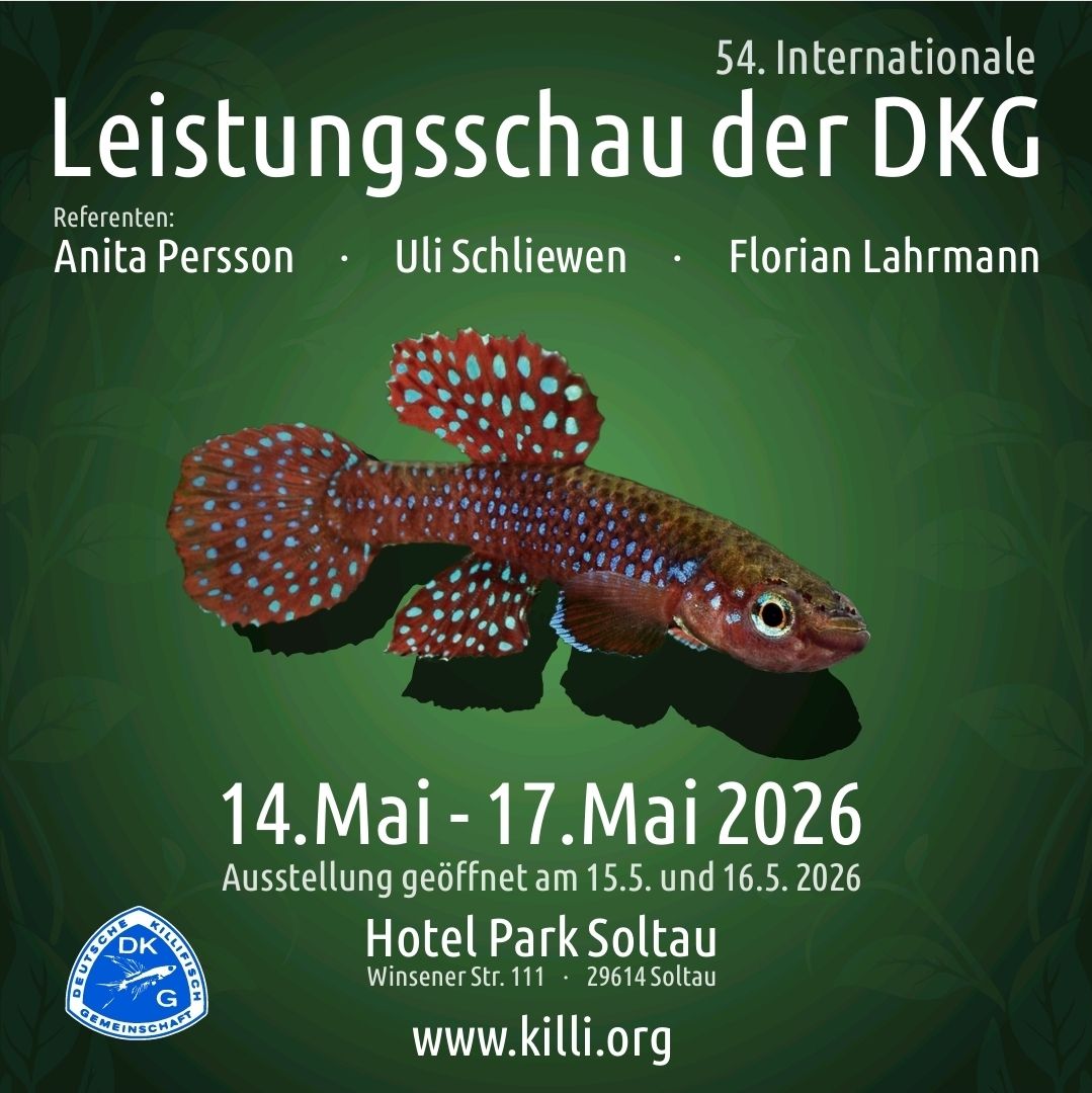 I samband med årsmötet anordnas en mindre Killiutställning i Södermalms Akvarieaffär 25 - 26 april. Öppettiderna kommer att vara lördag 12-17 och söndag 11-13 och därefter auktion.